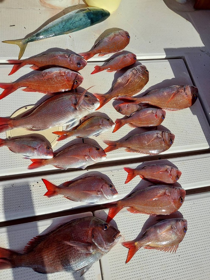 デカいのから小さいのまで真鯛連発でした! 日替わりですが良い日に当たればめちゃ喰ってきますよー! 皆さん大変お疲れ様でしたー!